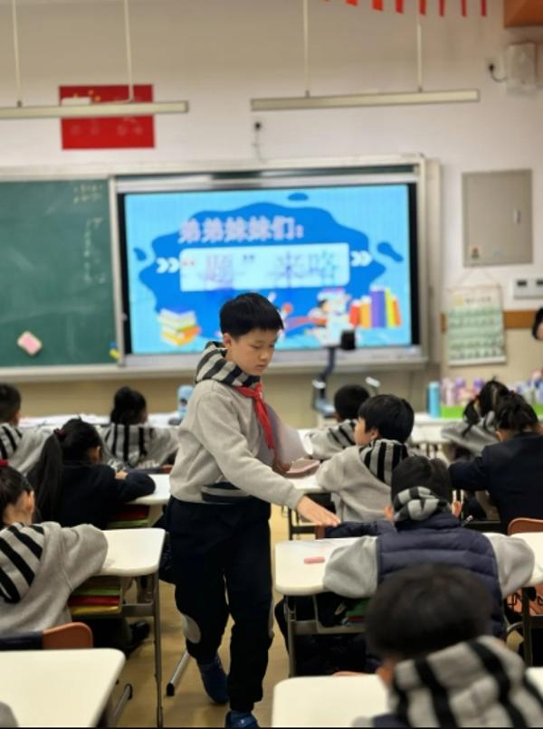 最近,上海金山区世界外国语学校(简称金山世外)五年级的萌娃们为弟弟妹妹“操碎了心”,忙着设计“计算测评”为弟弟妹妹“查缺补漏”,还化身专属小老师,手把手给弟弟妹妹答疑解惑。