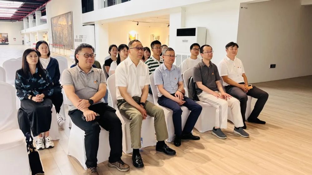 观看完艺术党课后,在虹庙艺术中心工作人员的带领和讲解下,党委书记徐俭同志和党员们参观了由中国美术学院师生创作的红色主题油画作品展览,《开国大典》《遵义会议》《飞夺泸定桥》《启航——中共一大会议》等一幅幅恢弘磅礴的壮阔画卷,将祖国壮丽史诗刻画得栩栩如生。
