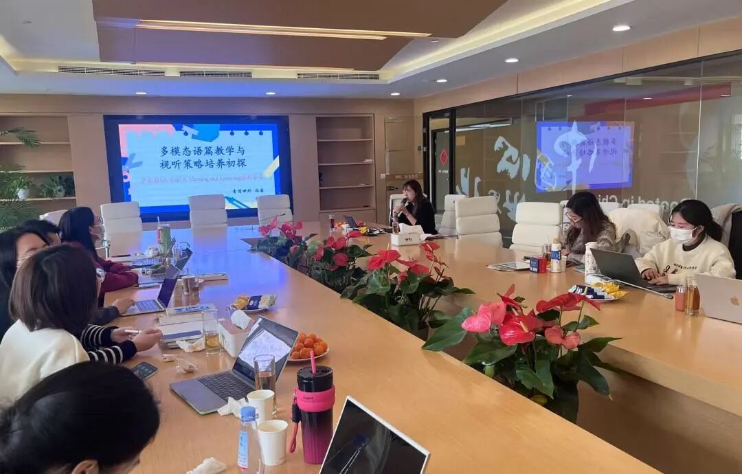下午的同伴分享环节精彩纷呈,充满了教学实践的智慧。青浦世外的冯园老师分享了视听课策略,提供了切实可行的方法,为大家在视听教学方面提供了新思路;嘉定世外的徐笑颖老师从提升课堂效益的角度出发,分享了优化教学流程和增强学生参与感的丰富经验,助力教师打造高效课堂;金山世外的孙寒香老师则聚焦于备课组团队协作,强调通过有效的团队研修促进资源共享与共同成长,为教师团队建设提供了有益借鉴。