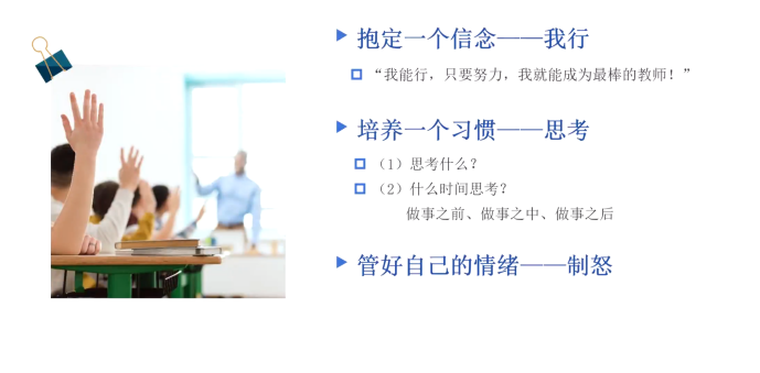 2月9日上午,徐承瑶老师进行了“德育实践·教师基本功”专题分享。徐老师以《如何与学生有效沟通》为题,通过几种常见的无效沟通案例,讲述了最基本的沟通原则和常用的沟通模型。