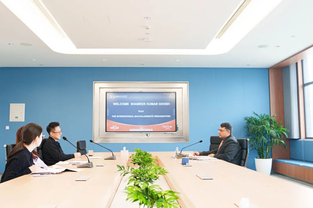 会谈中,Mr. Shameek系统阐述了IBDP项目的授权标准及关键流程节点,校方则分享了世外教育的办学理念及其在过往办学经验中对IB理念的认识。