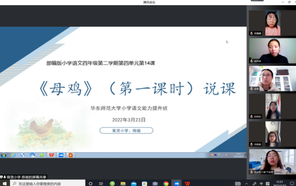 3月23日,上海世外教育集团——华东师范大学开展主题为“基于合作的阅读教学”的小学语文能力提升班,本次活动在育贤小学线上举行。活动由华东师范大学董蓓菲教授主持,华师大小学语文能力提升班全体学员、世外教育集团部分小学语文老师参加了本次活动。